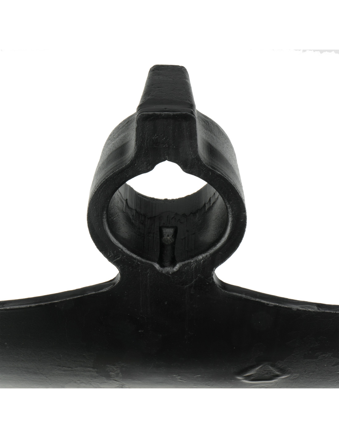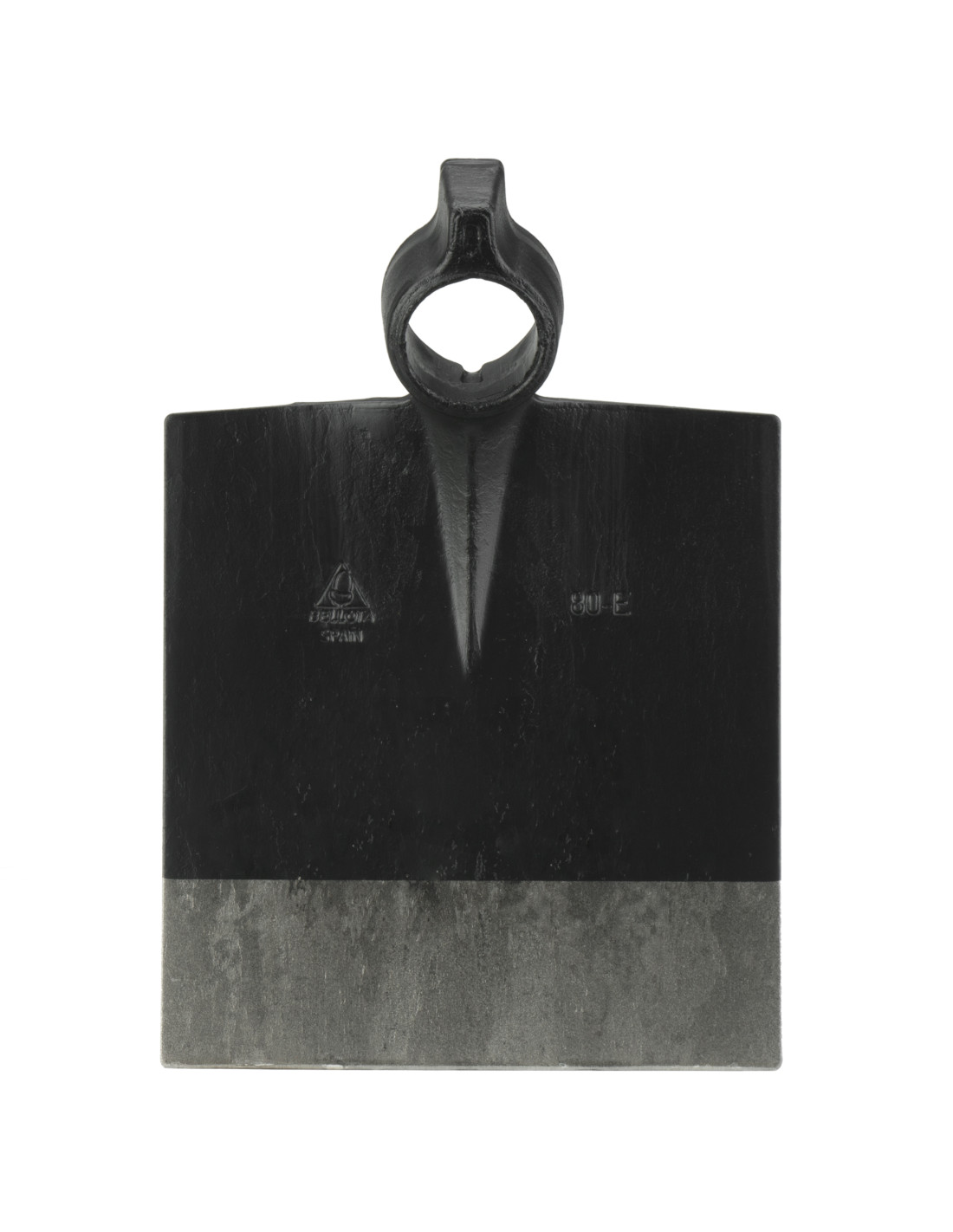 Azada forjada con sistema antigiro, cuadrada, con filo cuadrado, hombros rectos y martillo en el ojo