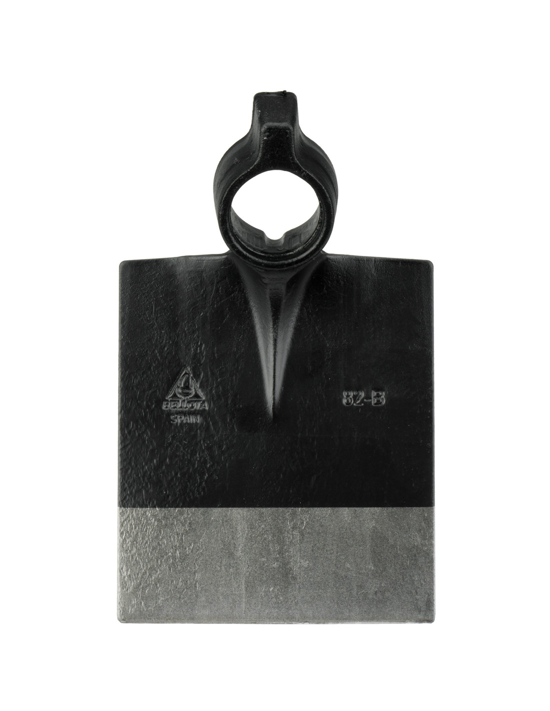 Azada forjada con sistema antigiro, cuadrada, con filo cuadrado, hombros rectos y martillo en el ojo