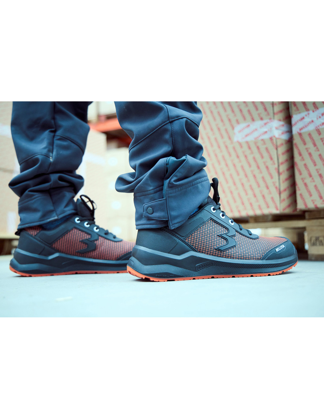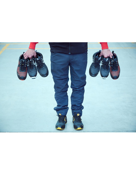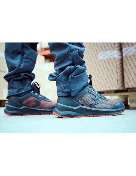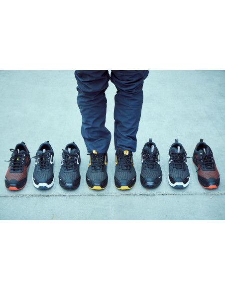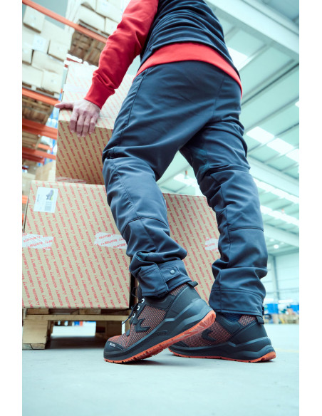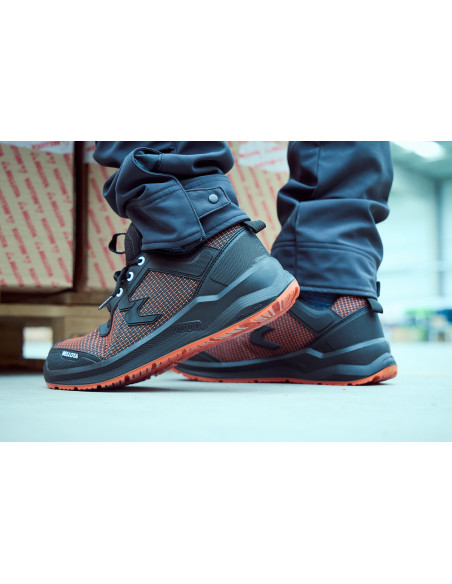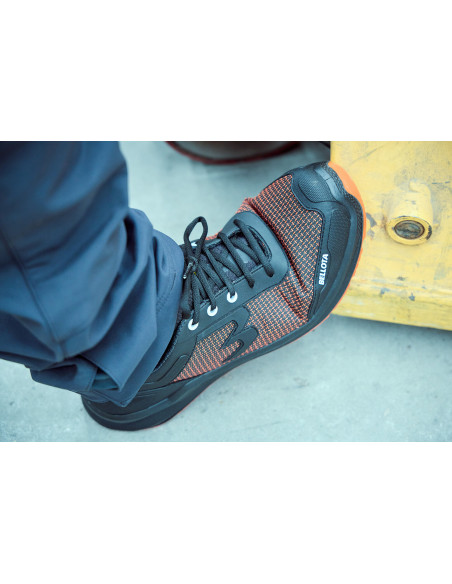 Zapato de seguridad RUN Naranja: Tejido FORTITEX hidrofugado y antiabrasión, Plantilla gel extra-cómoda , puntera de fibra de vidrio, certificación anti-perforación S3S, suela estabilizadora OPEN CELL