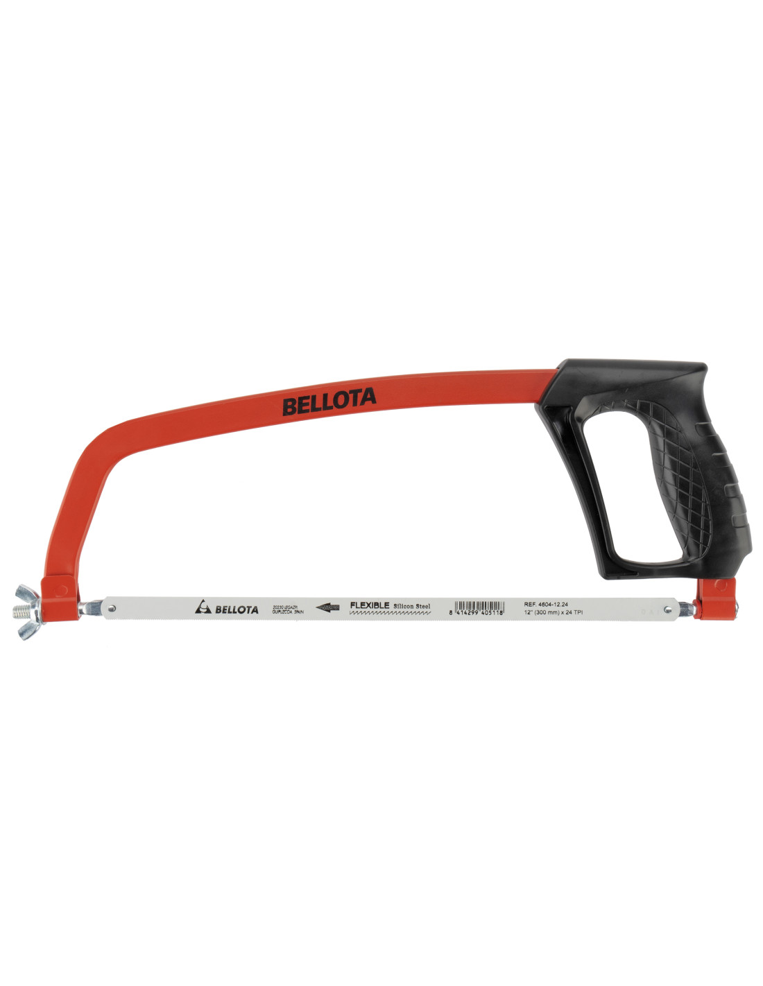 Arco de acero profesional con pletina maciza de 5 mm y mango de polipropileno ergonómico. Mecanismo tensionador y cambio rápido de la hoja incorporado. Incluye hoja de sierra flexible de acero aleado.