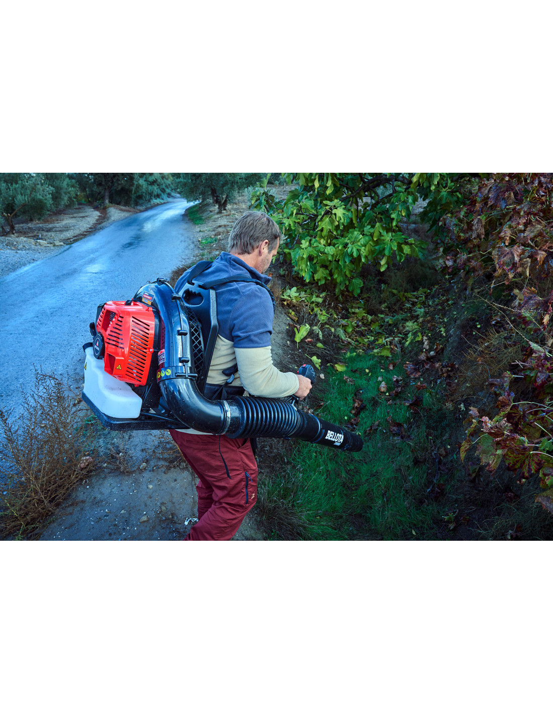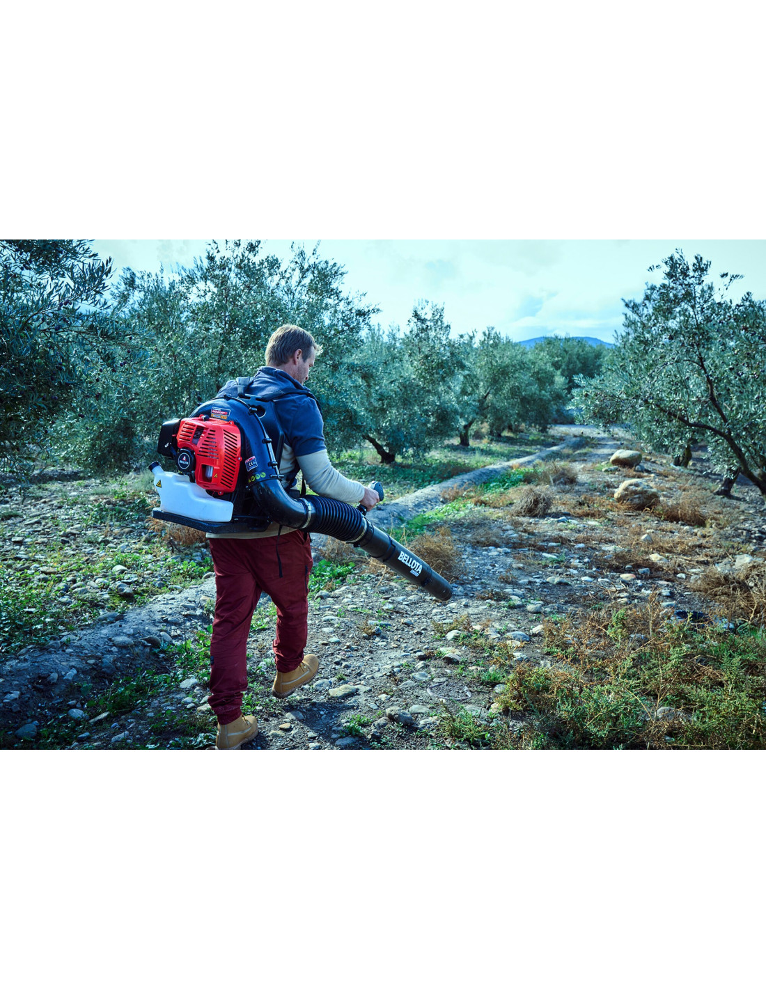 Soplador de mochila de 2T de 79,4cc y 3Kw, con gran capacidad de soplado.
