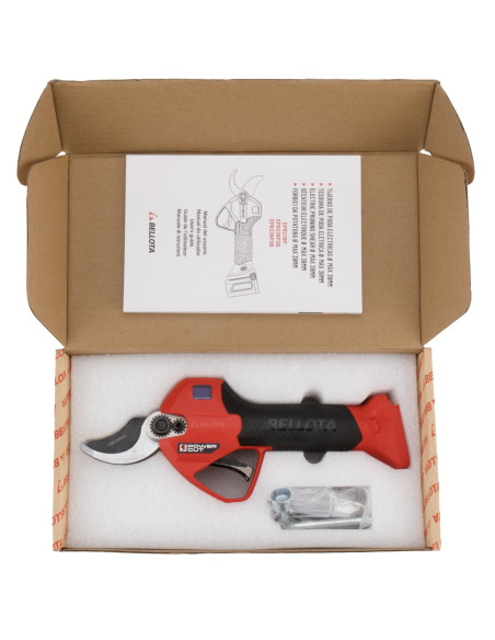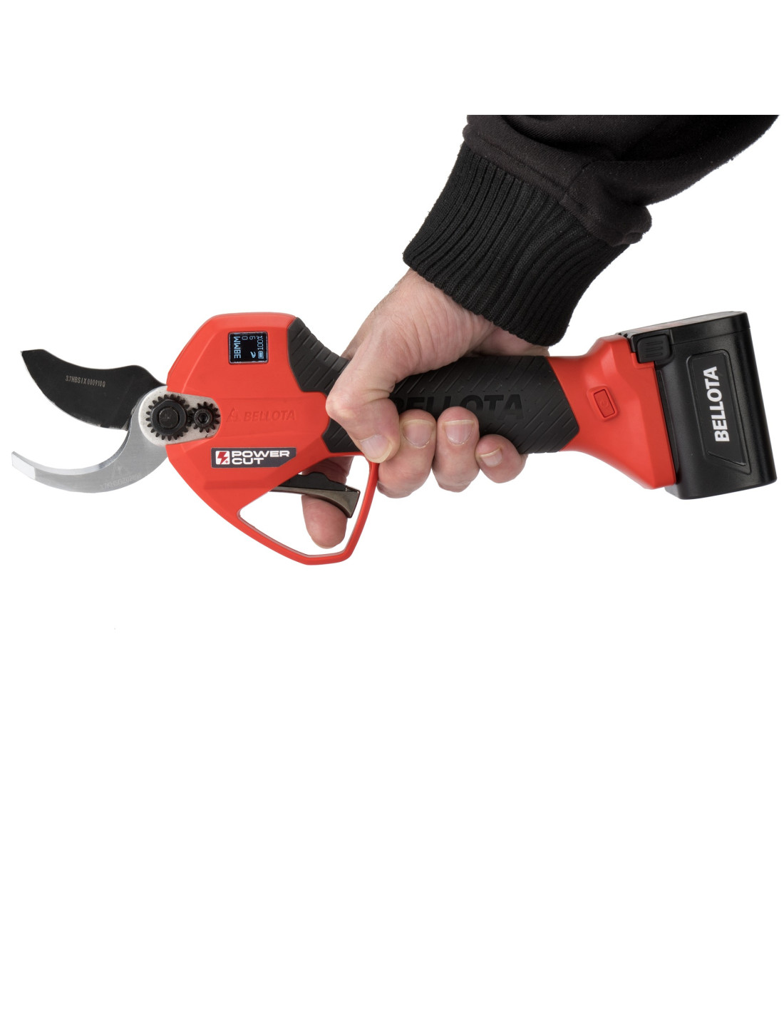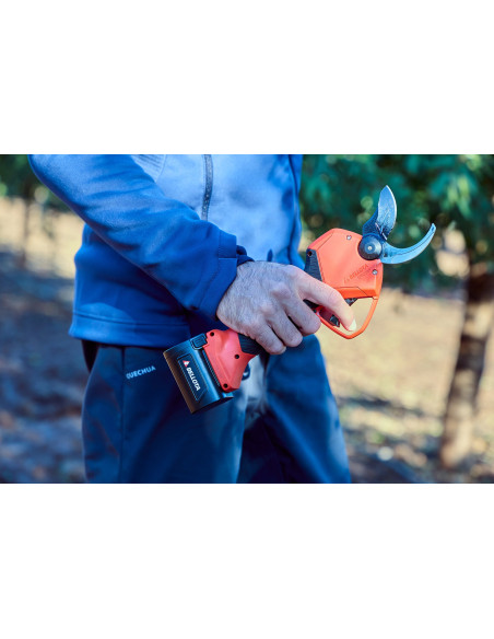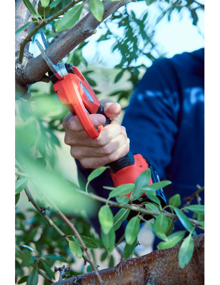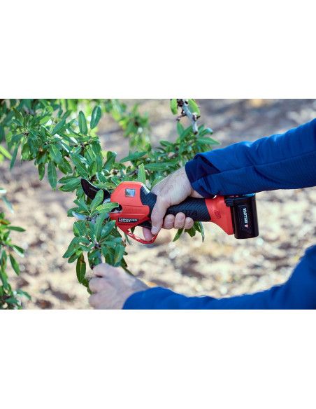 Tijera de poda eléctrica POWER CUT con batería de Litio Ion y un corte máximo de 38mm de diámetro.
