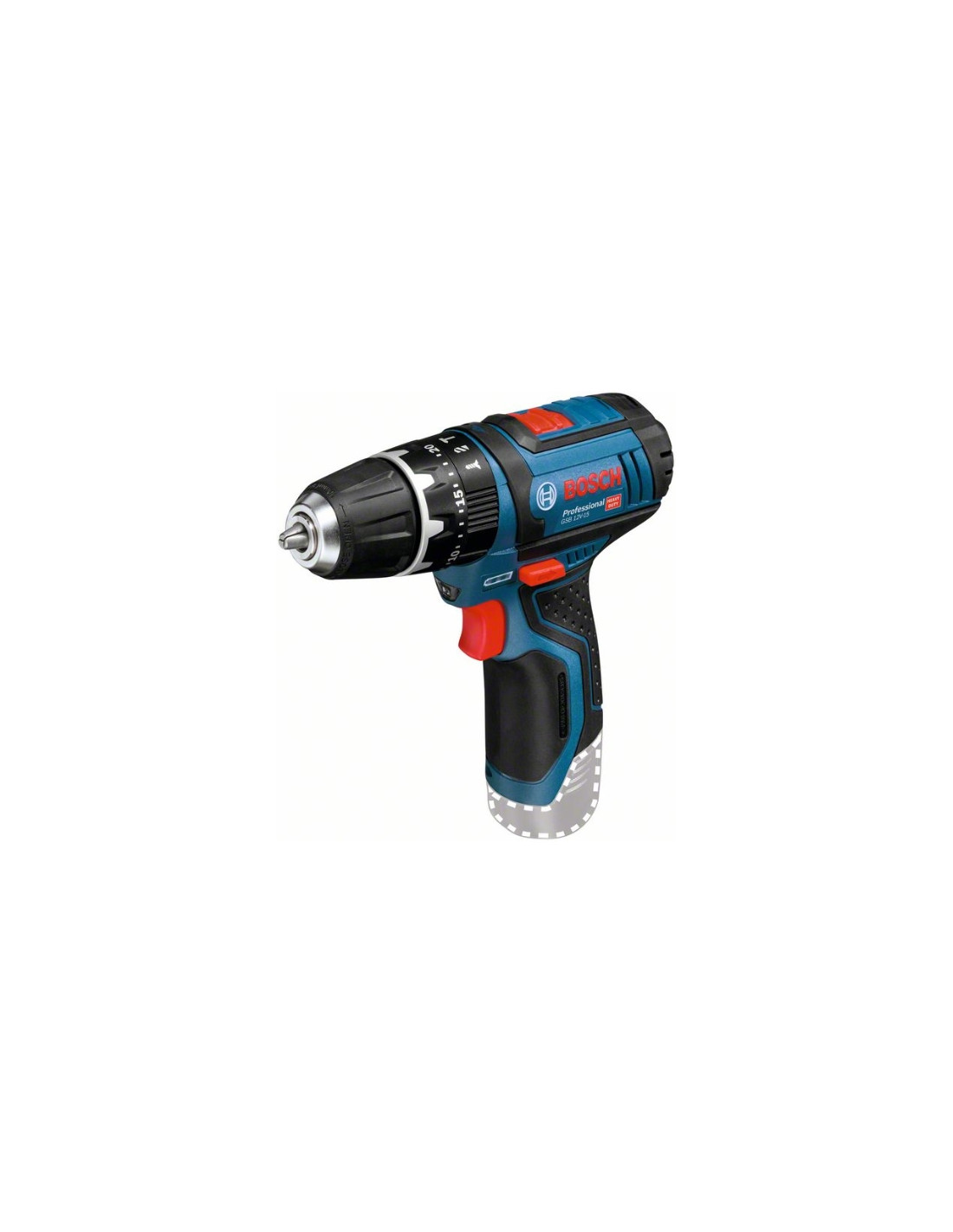 Atornilladores taladradores de percusión a batería GSB 12V-15, Atornillador con la mejor relación entre potencia y tamaño en la categoría de 12 V de Bosch, con función de taladrado con percusión, Par de giro duro de 30 Nm y 0-1300 rpm son la combinación perfecta de potencia y tamaño, Su tamaño compacto proporciona un manejo óptimo y lo convierte en la herramienta perfecta para trabajar en altura y en espacios reducidos, La función Electronic Cell Protection impide la sobrecarga, el calentamiento y la descarga total, Caja de cartón; 1/2 bandeja para L-BOXX para herramienta y cargador (1 600 A00 2UV)