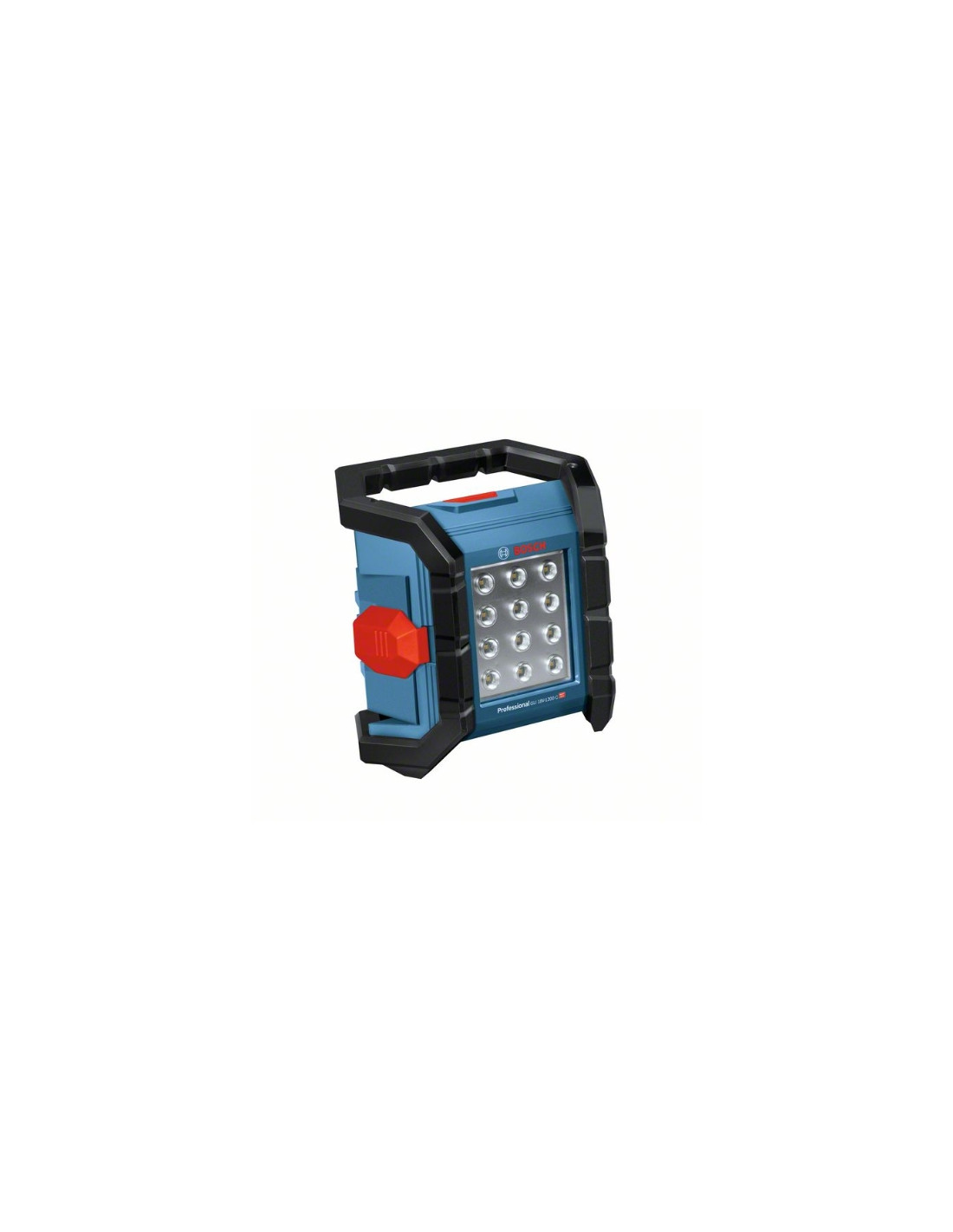 Linterna de trabajo con batería GLI 18V-1200 C, La compacta y robusta lámpara de 1200 lúmenes en la categoría de 18 V - conectada, 12 potentes LED que generan hasta 1200 lúmenes para unas condiciones lumínicas excelentes, A prueba de polvo y salpicaduras gracias a su resistente tapa de batería con grado de protección IP 64, Cómodo control desde el smartphone para realizar ajustes de iluminación en remoto de manera rápida y sencilla; dos niveles de intensidad, cinco ángulos de ajuste, Caja de cartón