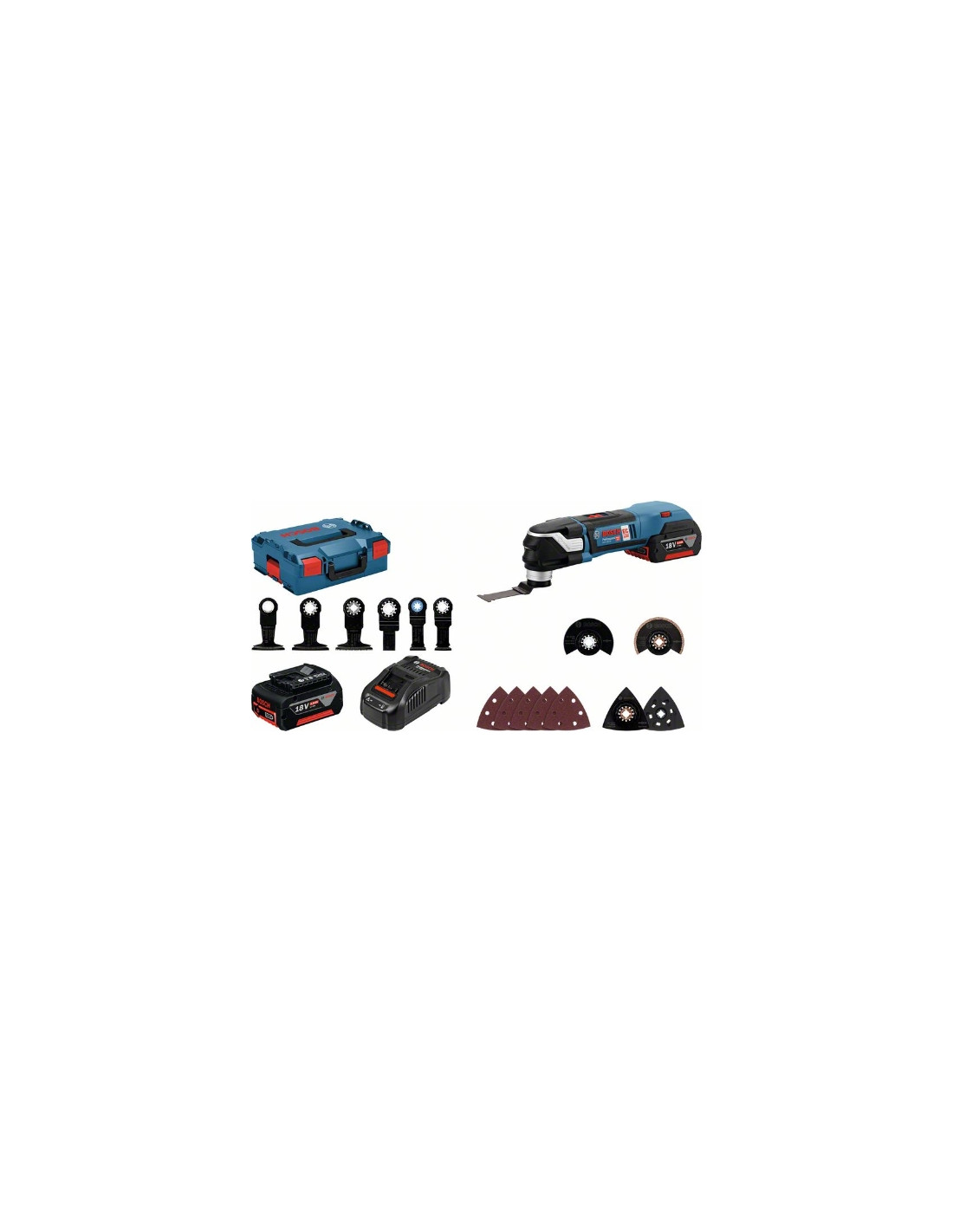 Multi-Cutter a batería GOP 18V-28, La herramienta potente y versátil de la gama StarlockPlus de Bosch, Enganche superior Starlock con conexión 3D ajustada mejorada para mayor transmisión directa de fuerzas, Foco LED para iluminar el área de trabajo y mejorar la visibilidad incluso en la oscuridad, Función de encaje a presión para cambiar de accesorio de forma rápida y fácil, 1 hoja de sierra de inmersión Starlock BIM AII 65 APB, Curved-Tec, Wood + Metal (2 608 661 781); 1 hoja de sierra de inmersión Starlock BIM AII 65 BSPB, Curved-Tec, Hard Wood (2 608 662 017); 1 hoja de sierra de inmersión Starlock BIM AIZ 20 AB, Wood + Metal (2 608 661 640); 1 hoja de sierra de inmersión Starlock BIM AIZ 32 APB, Wood + Metal, Curved-Tec (2 608 661 644); 1 hoja de sierra segmentada Starlock BIM ACZ 85 EB, Wood + Metal (2 608 661 636); 1 placa lijadora Starlock Carbide-RIFF AVZ 78 RT2, Grout + Abrasive (2 608 661 648); 1 hoja de sierra segmentada Starlock Carbide-RIFF ACZ 85 RT3, Grout + Abrasive (2 608 661 642); 1 placa lijadora delta Starlock AVZ 93 G (2 608 000 493); 1 hoja de sierra de inmersión StarlockPlus BIM PAII 65 APB, Curved-Tec, Wood + Metal (2 608 662 564); 1 hoja de sierra de inmersión StarlockPlus BIM PAIZ 32 APB, Curved-Tec, Wood + Metal (2 608 662 558); 1 hoja de sierra de inmersión StarlockPlus Carbide PAIZ 32 AT, metal (2 608 662 555); 5 hojas de lija, K 2x80, 2x120, 1x240 (2 608 621 104); L-BOXX 136 (1 600 A01 2G0); Cargador rápido GAL 1880 CV (1 600 A00 B8G); 2 baterías GBA 18V 5.0Ah (1 600 A00 2U5)