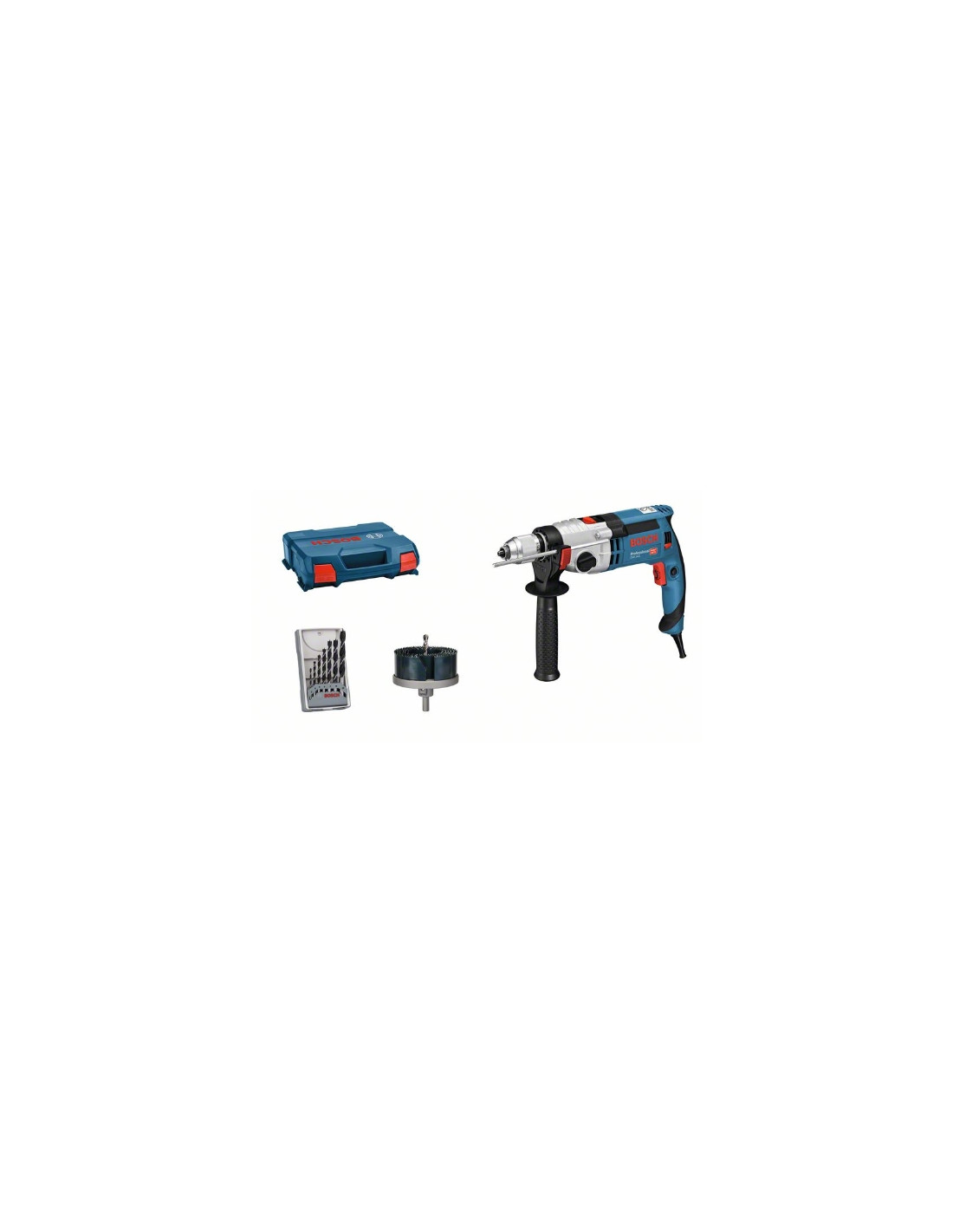 Taladradora de percusión GSB 24-2, Portabrocas de sujeción rápida de 13 mm (2 608 572 150); Empuñadura adicional (2 602 025 193); Tope de profundidad de 210 mm (1 613 001 010); L-Case (1 600 A00 M7X); Juego de 7 brocas para madera (3/4/5/6/7/8/10 mm) (2 607 017 034); Juego de sierras de corona (2 608 584 063)