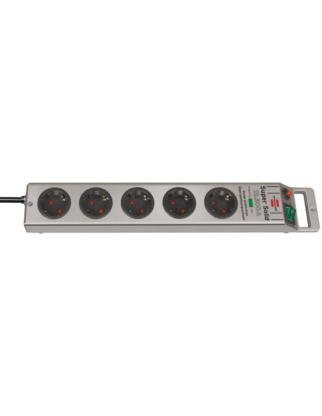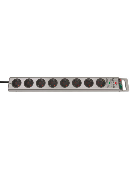 Base de tomas múltiples con protección contra sobretensión y salida de cable opuesto a interruptor color plata Super-Solid