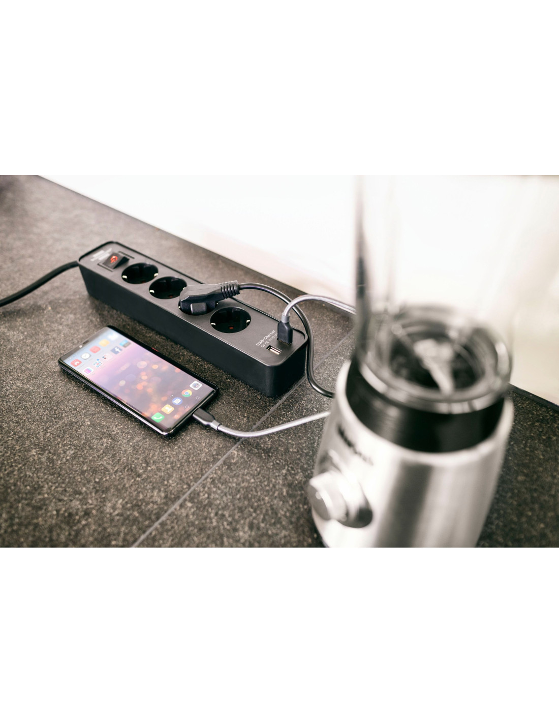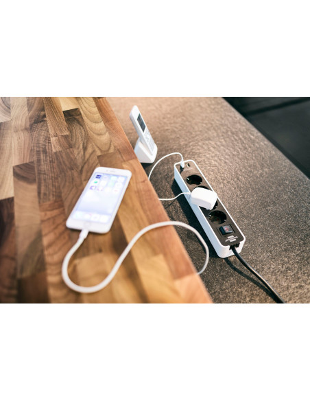 Base de tomas múltiples Ecolor con diseño compacto y puertos USB