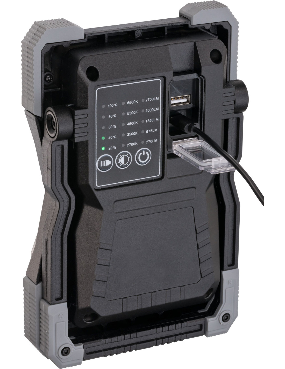 • Función powerbank: puerto de carga USB para cargar dispositivos móviles.