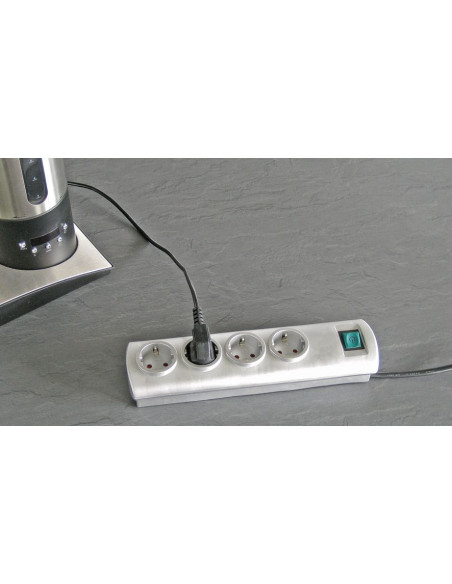 Base de tomas múltiples Primera-Line color plata con distancia extra entre los enchufes