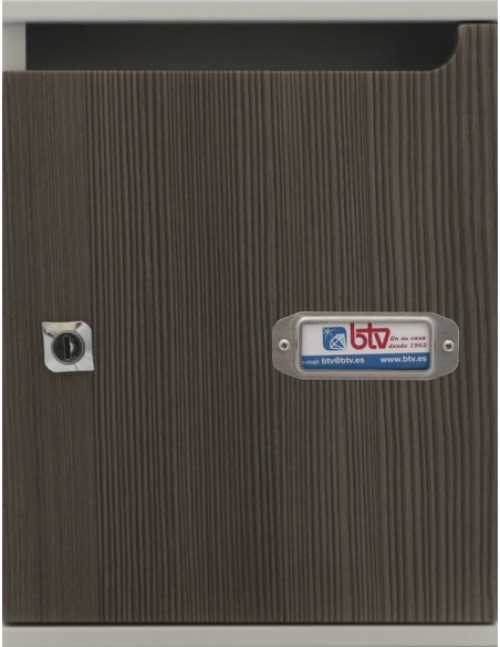 - Puertas de tablero de fibras de madera (MDF) de alta resistencia revestido en polilaminado disponibles en diferentes acabados: blanco brillo, plata, burdeos brillo, wengué, moka, teka, roble rústico y gris ceniza.