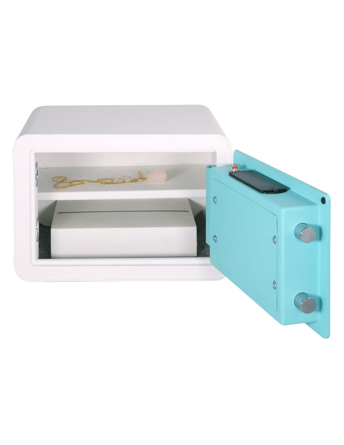 - Sistema de cierre con cerradura electrónica y pomo giratorio. Código de apertura de 3 a 8 dígitos.