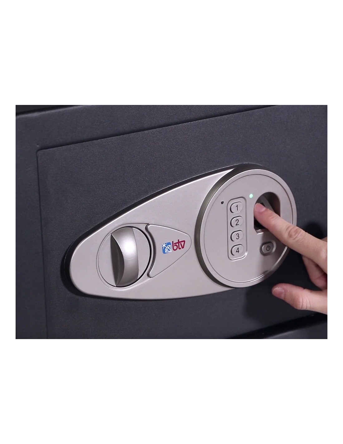 - Con lector de huella dactilar y capacidad para memorizar hasta un máximo de 32 huellas.