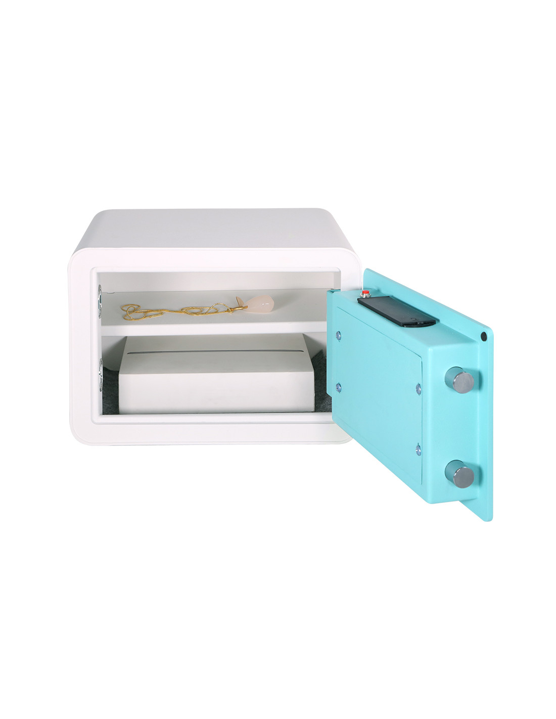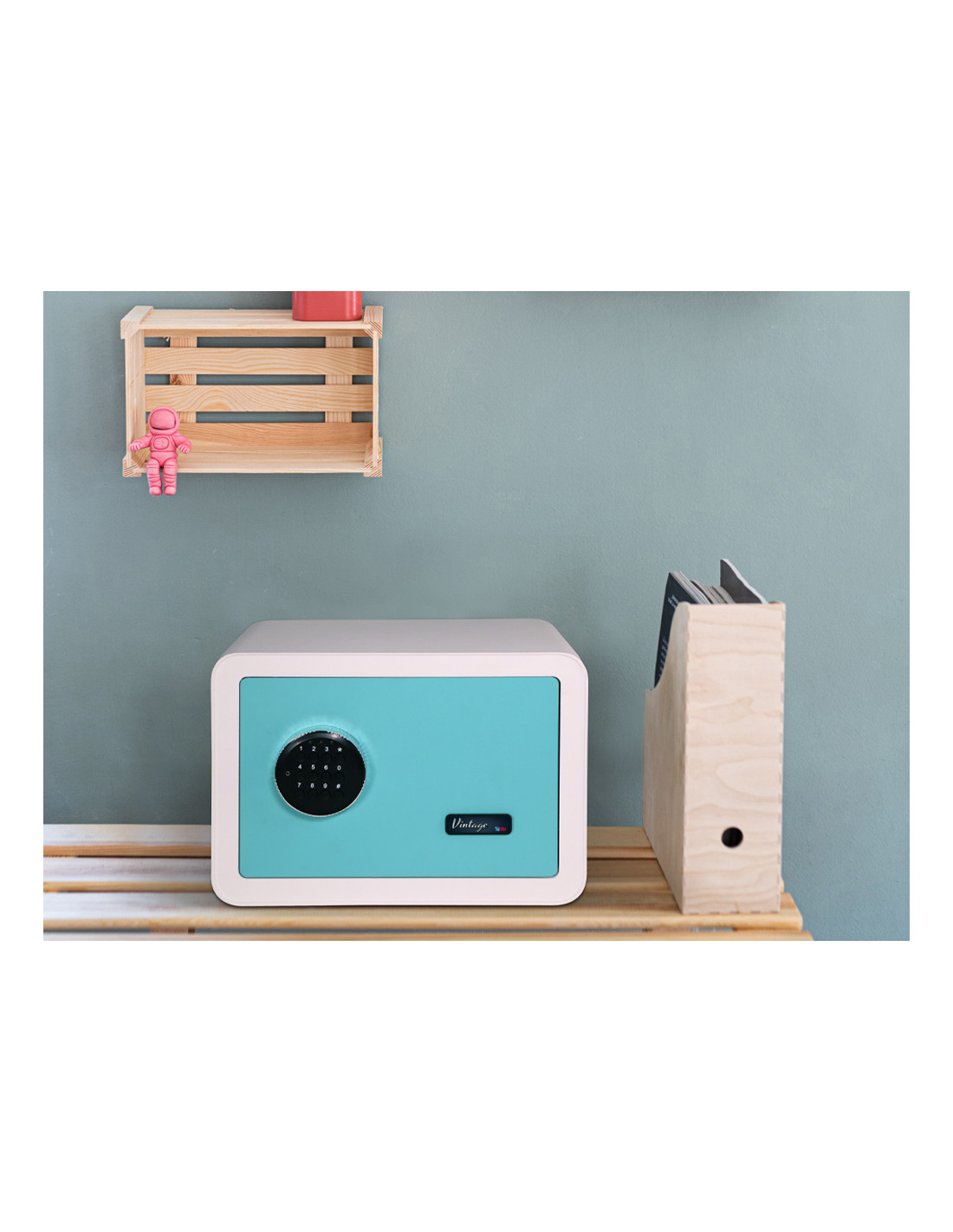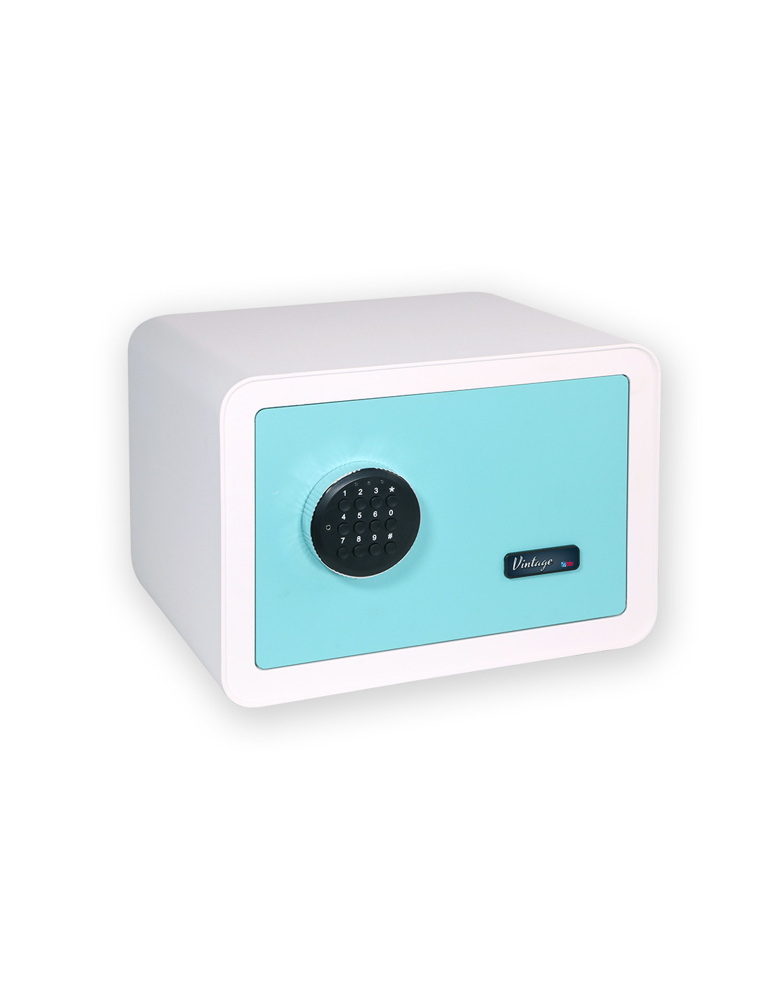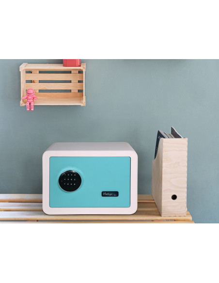 CAJA FUERTE VINTAGE BLANCA PUERTA TURQUESA