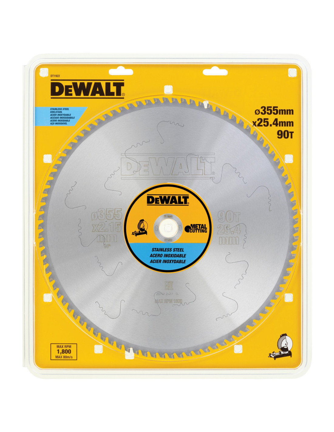 DT1922-QZ - Hojas para Sierra Estacionarias 355 x25.4 x 90D para Acero inoxidable