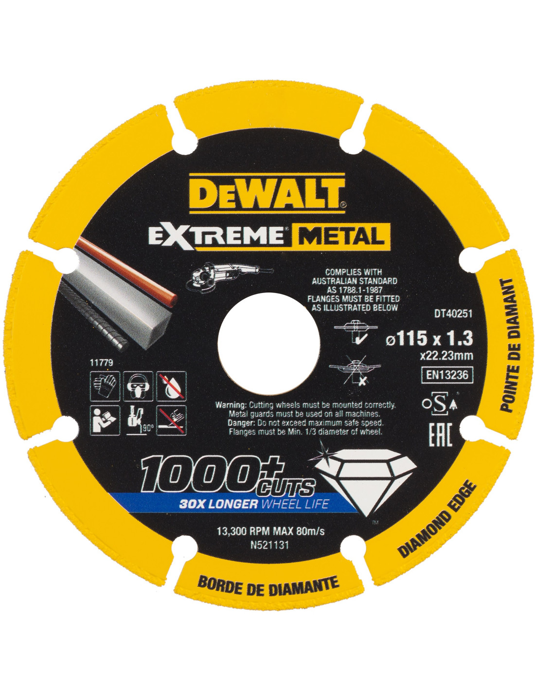 DT40251-QZ - Disco de corte con borde diamantado Extreme Metal 115x1.3x22.3mm