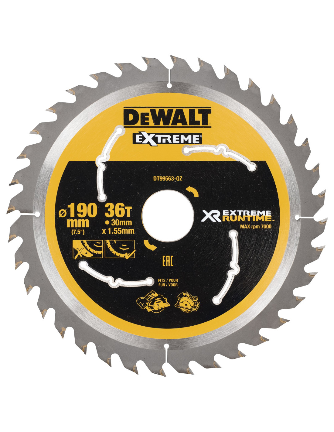 DT99563-QZ - Hojas para Sierra Circular portátil XR EXTREME RUNTIME 190mm x 30mm 36D