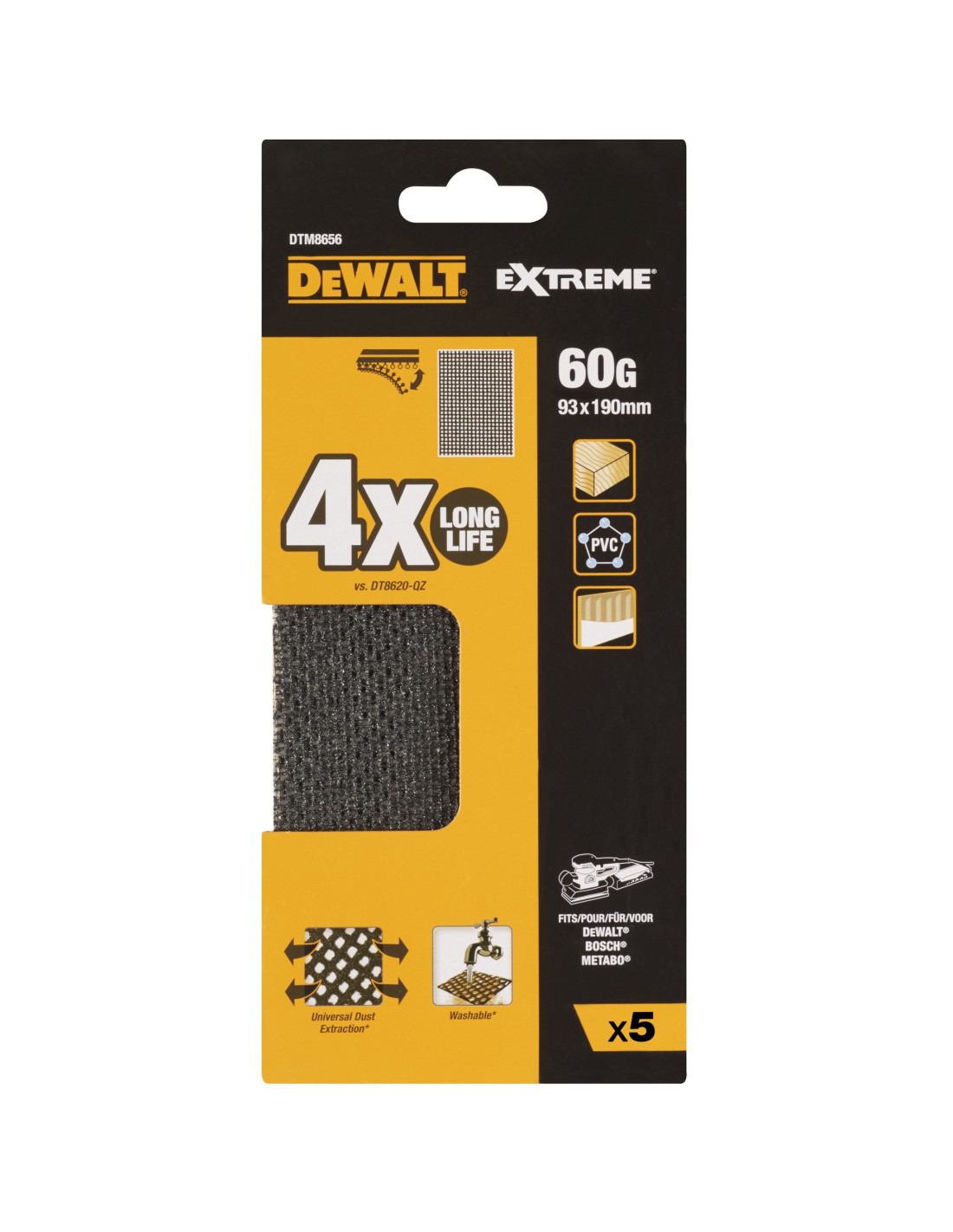 DTM8656-QZ - Lija de malla 1/3 de hoja -grano 60- 39x190mm - para usar con todo tipo de lijadora orbital