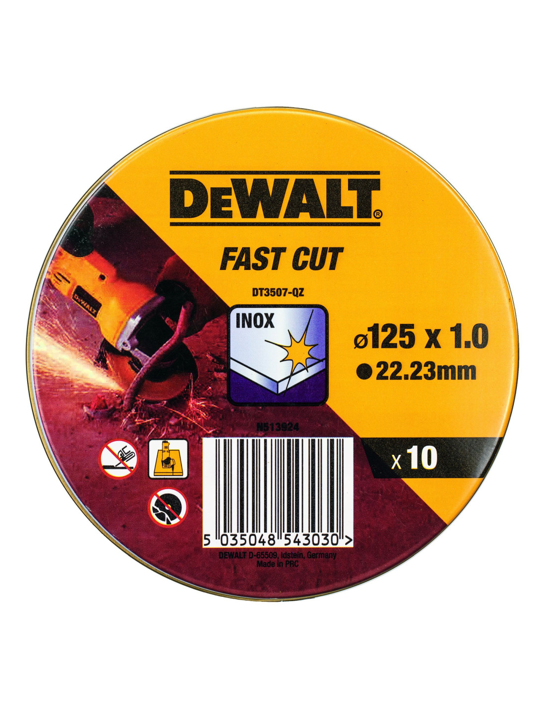 DT3507-QZ - Lata con 10 discos de corte de alto desempeño para acero inox 125 x 1 x 22.23mm