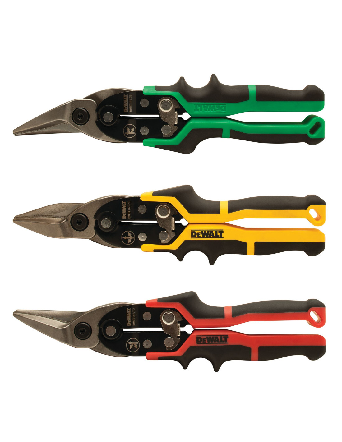 DWHT14676-0 Set de 3 tijeras corta chapas ergo. Corte recto, izquierdo y derecho