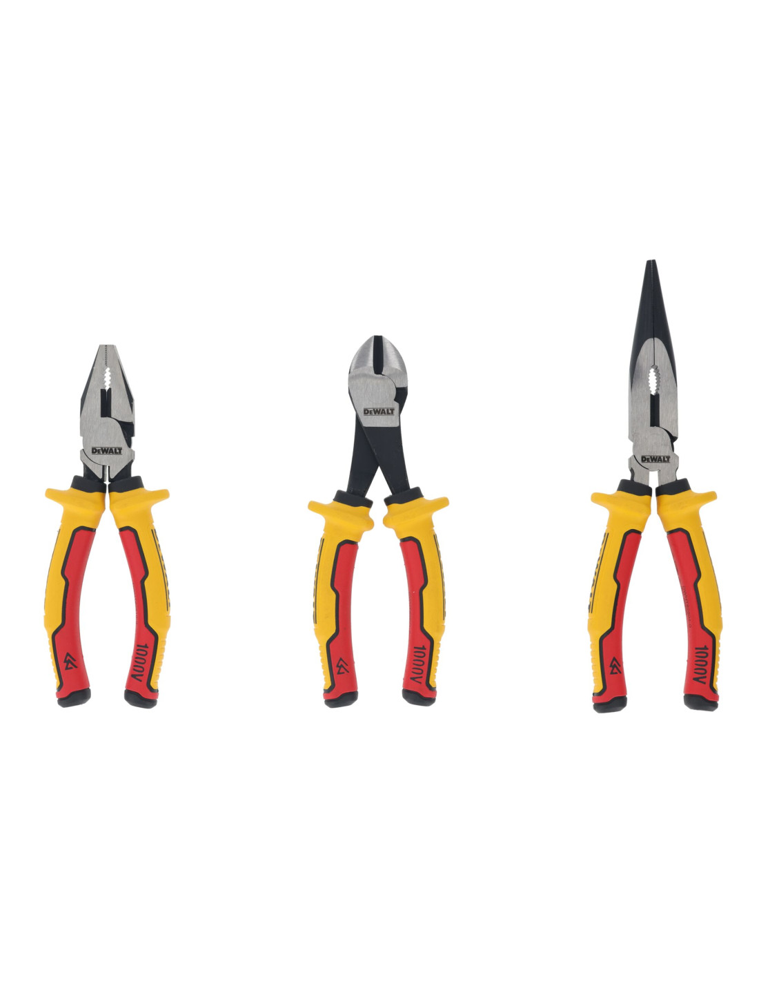 DWHT82811-0 - Set 3 alicates VDE: Diagonal 160mm, Bocas largas 200mm, Universal 160mm