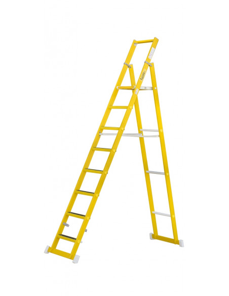Escalera de fibra de tijera con plataforma y peldaño ancho de 82 mm., de tramos paralelos.