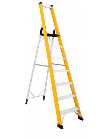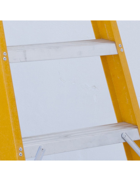 Escalera fibra tijera con plataforma y peldaño ancho de aluminio