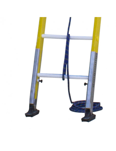 › Cinta de apoyo, cáncamos y mordazas. - Equipamiento opcional: Patas extensibles con ganchos para estabilizar la escalera. Pueden ser de aluminio o de fibra y aluminio.