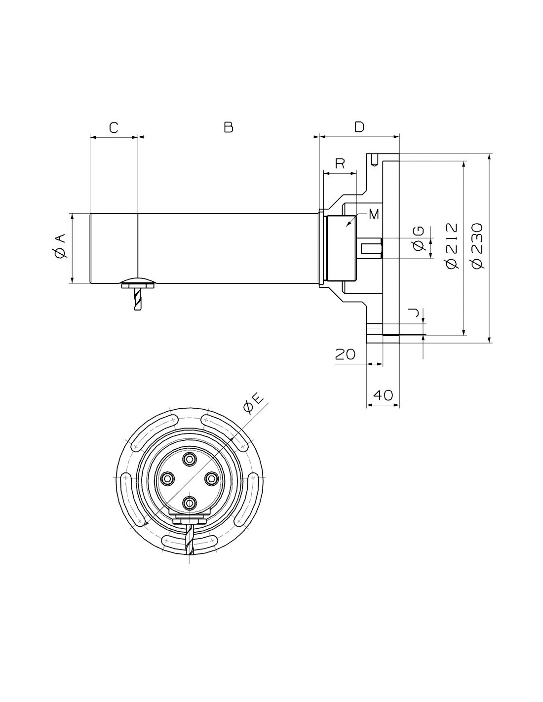 A (ø del cabezal)