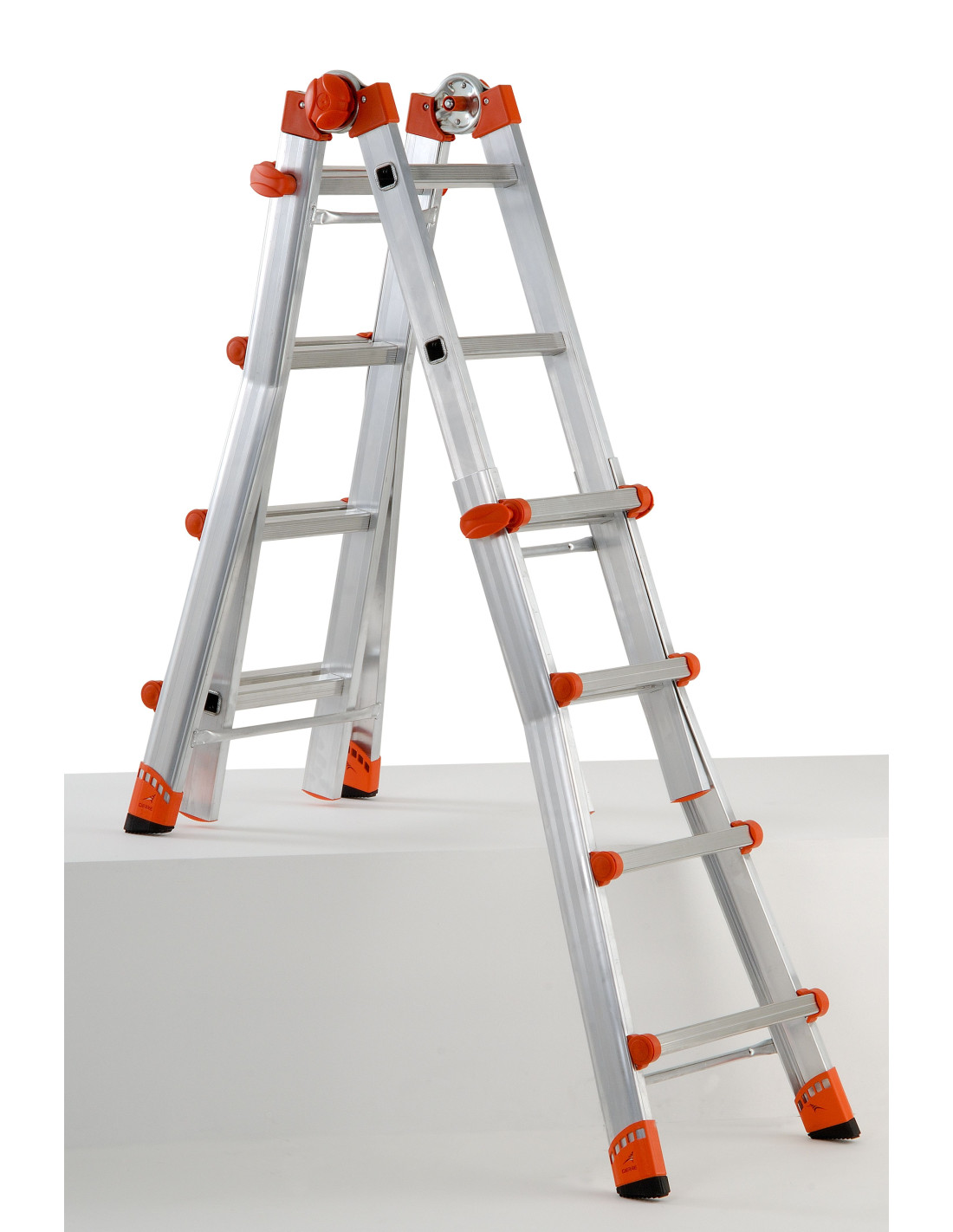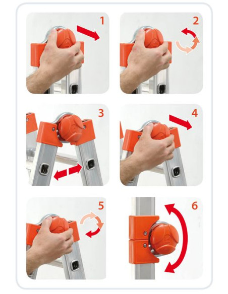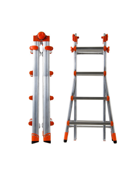 Escalera multifunción de aluminio compacta con articulación de bloqueo automático