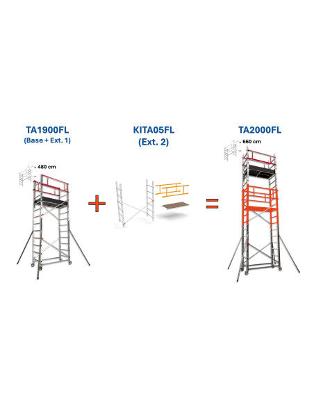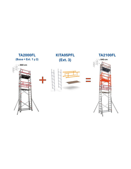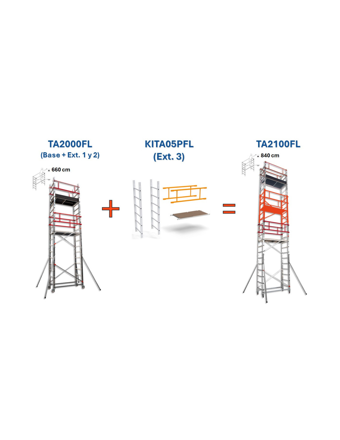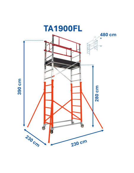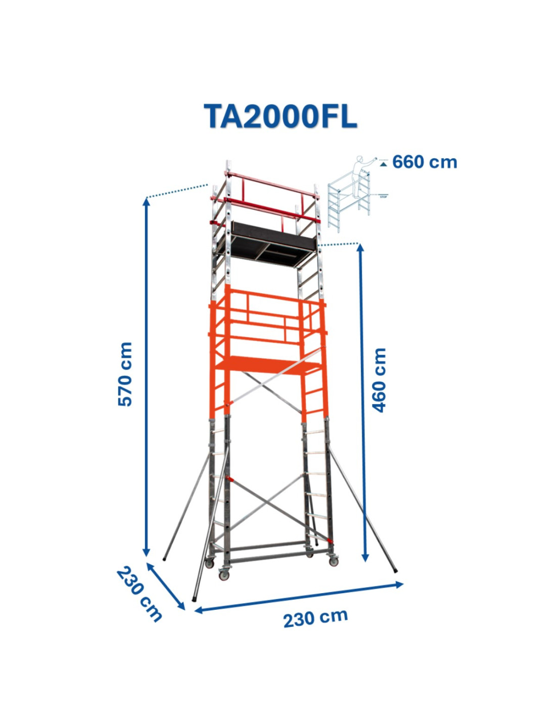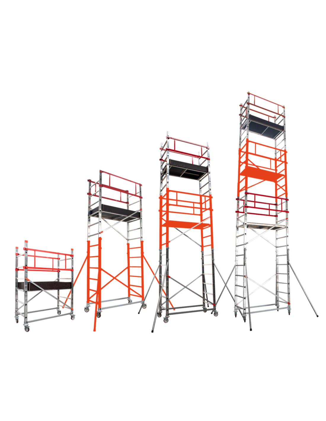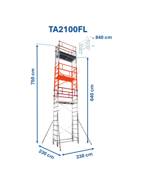 Torre móvil profesional de aluminio con ruedas · Clase 3 · Plataforma hasta 6,40 m
