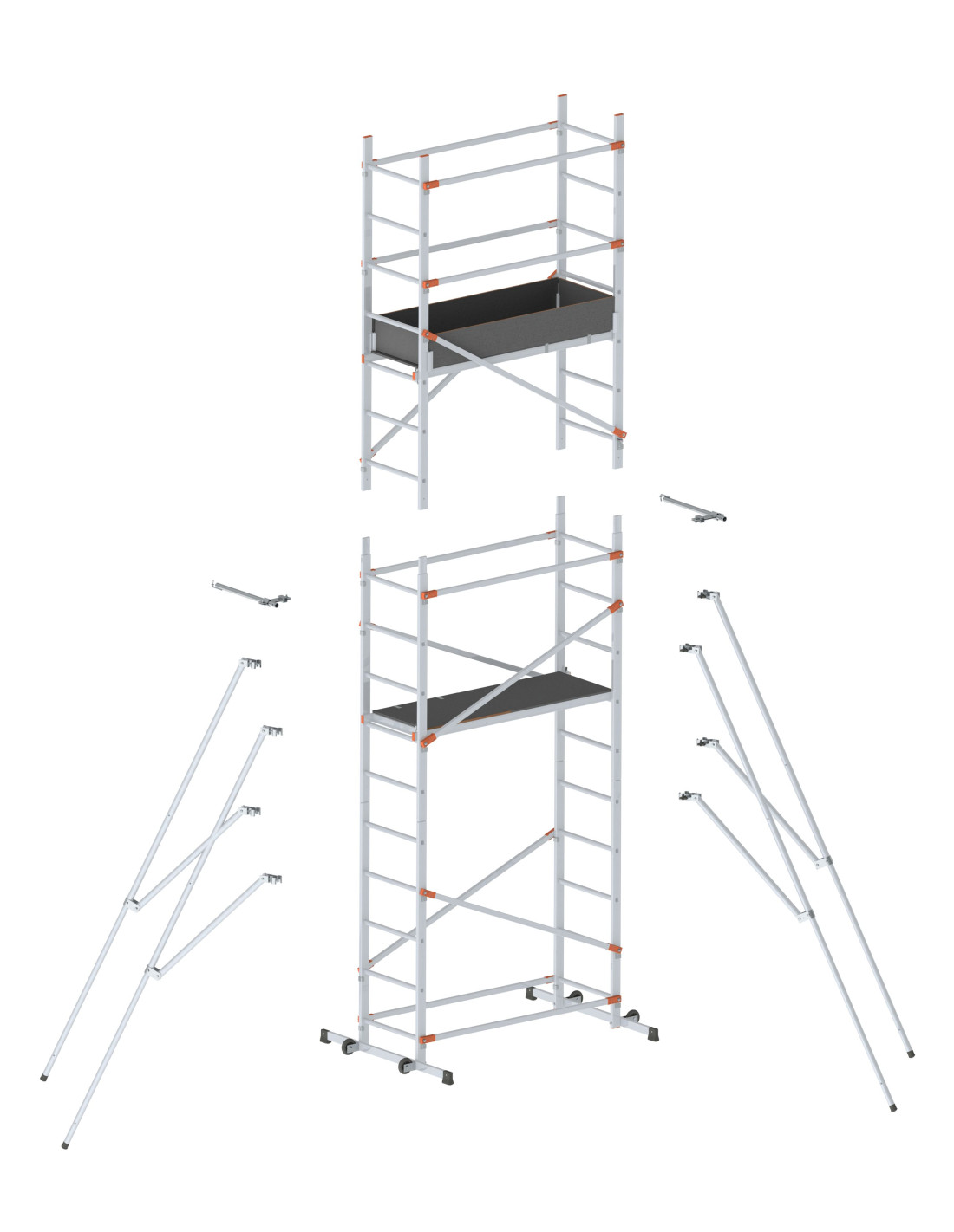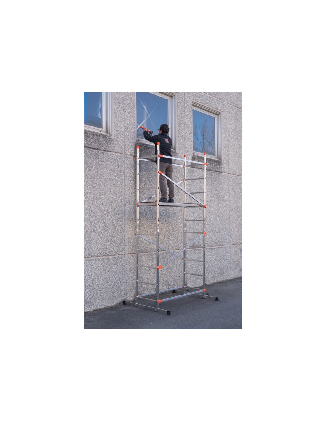 Andamio de aluminio y extensión opcional con sistema de montaje rápido