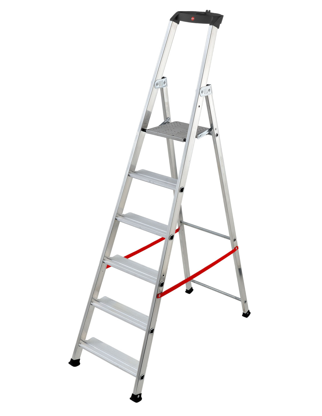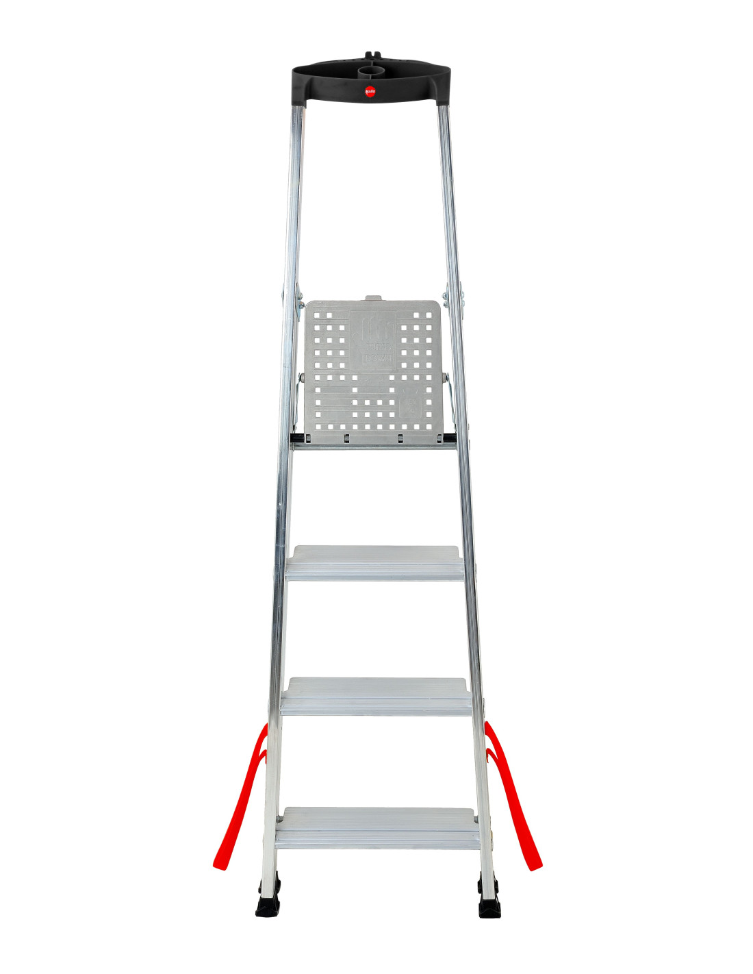 Escalera profesional Hailo Alu Pro con plataforma antideslizante y peldaños anchos de 11 cm