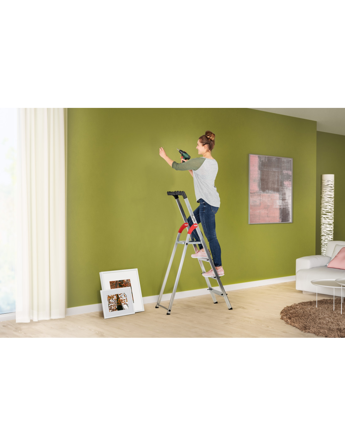 Escalera doméstica de aluminio con bandeja portaherramientas 3–8 peldaños EN 131