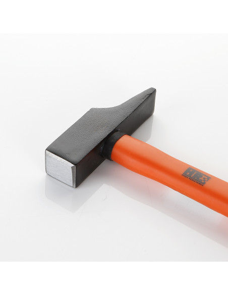 Martillo de cabeza de acero con cabeza de golpeo y punta transversal, con mango bicomponente de fibra de vidrio. Union por resina. Alyco HR.