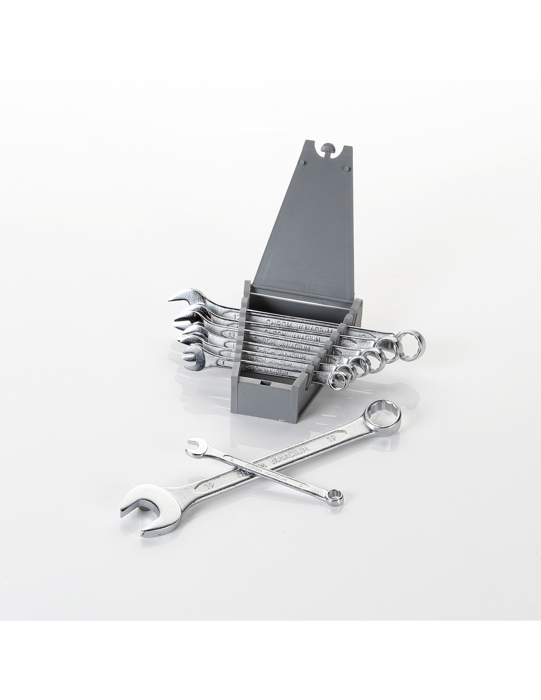 Juego de 8 llaves combinadas boca abierta- boca estrella desde 8 a 19 mm, en Acero al Cromo-Vanadio, en soporte plástico HR Alyco