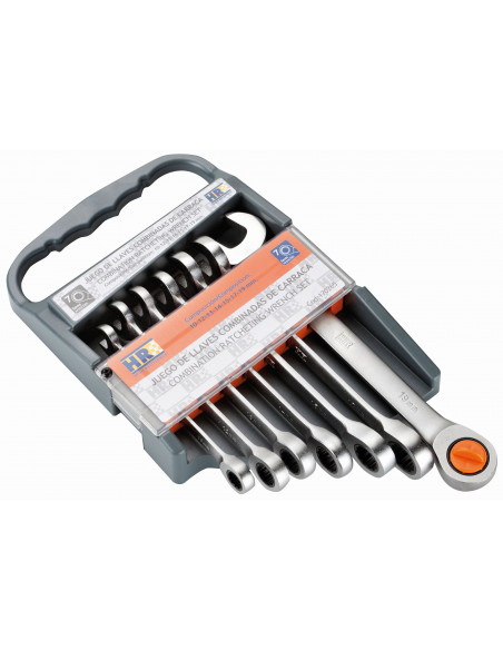 JUEGO DE LLAVES COMBINADAS CON CARRACA, SOPORTE DE PLASTICO HR