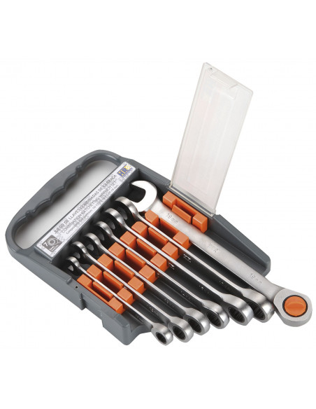 Juego de 7 llaves combinadas de carraca en soporte de plástico, de 10 a 19 mm. Alyco