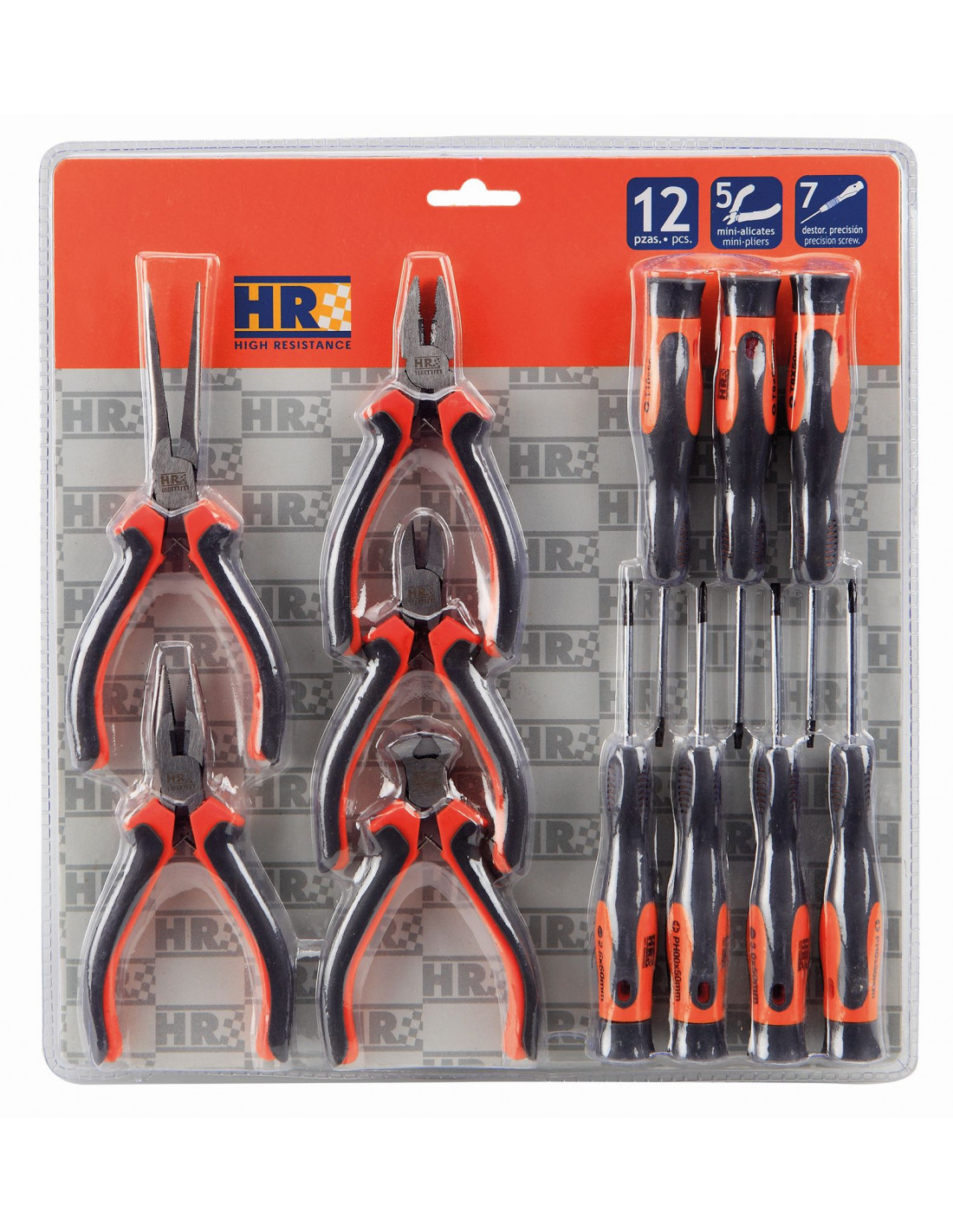JUEGO DE MINIALICATES Y DESTORNILLADORES PRECISIÓN 12 PIEZAS EN BLISTER HR