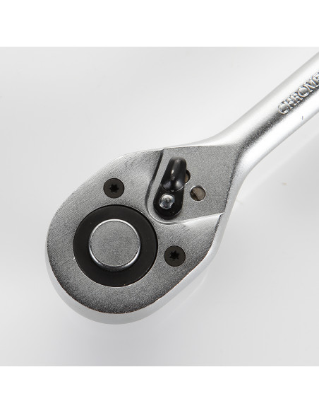 Llave de carraca con cuadradillo de 1/2" de 45 dientes para aprietes de tuerca hexagonal con vaso. Carraca con inversor y expulsor de vasos Alyco.