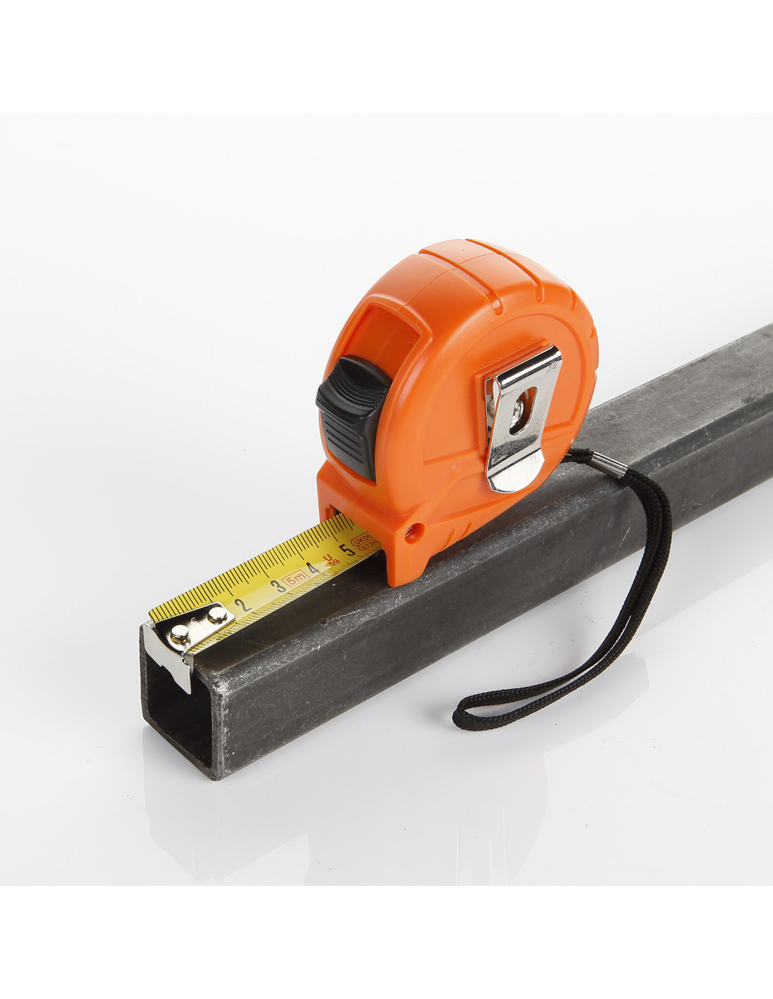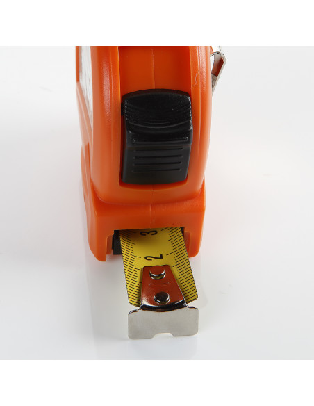 Flexometro de cinta metálica con lectura métrica, pestaña de acero, carcasa plástica con freno de rebobinado HR Alyco