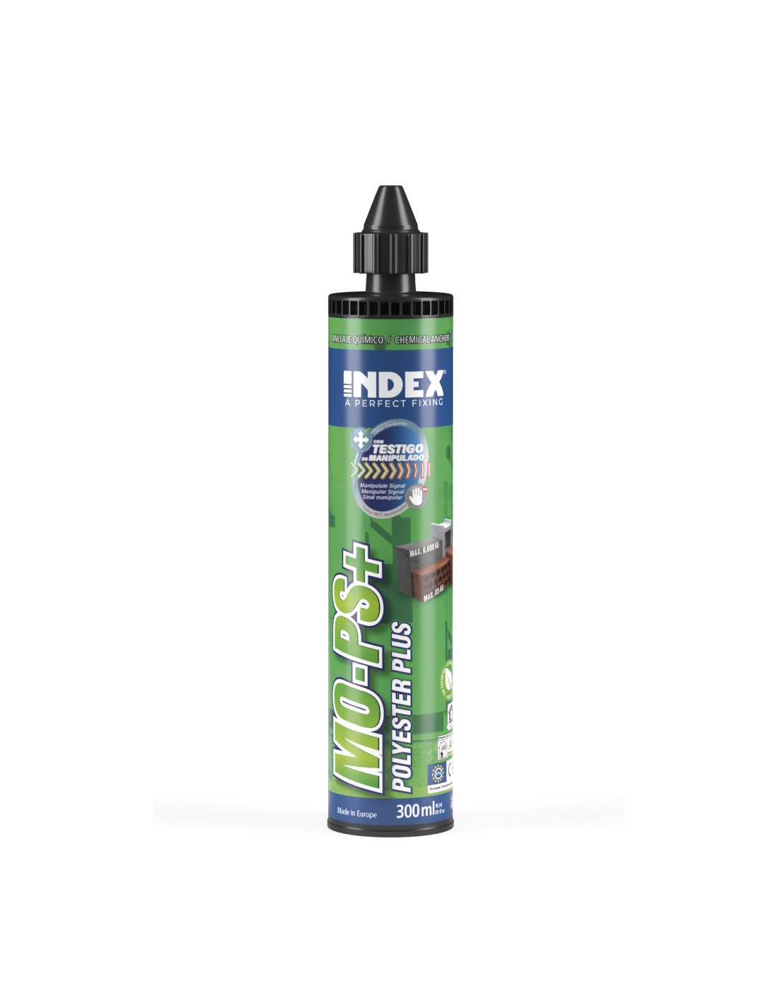 - 1 Cartucho de MO-PS+ de 300 ml con testigo de manipulado, una novedosa tecnología que hace que la resina cambie de color cuando inicia el proceso de curado, de azul a gris.