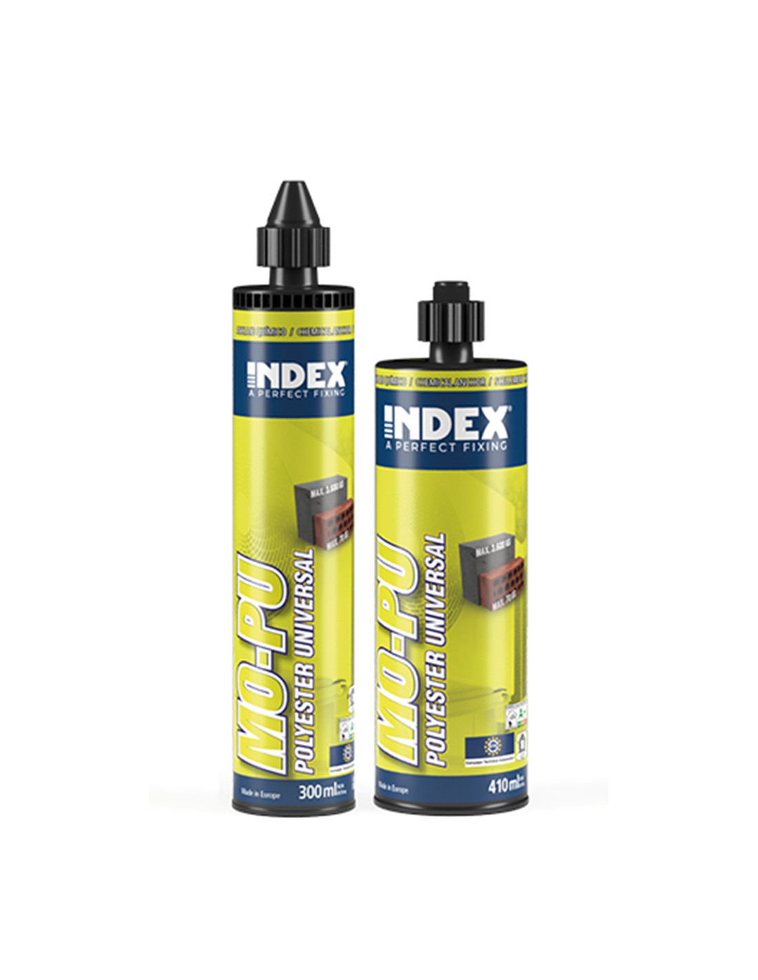 Taco químico a base de resina de poliéster universal. Válido para su uso en todo tipo de aplicaciones en hormigón y también válido para mampostería de ladrillo hueca y maciza.