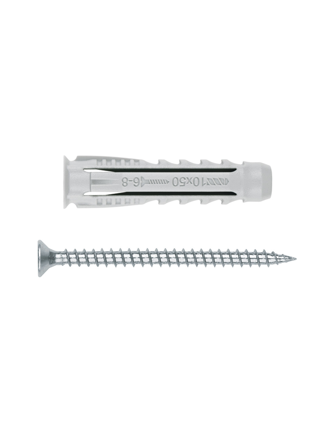 [CP TN4S + TP-PO Z] Taco de nylon anudable de 4 segmentos para todo tipo de materiales. Taco + tirafondo cincado