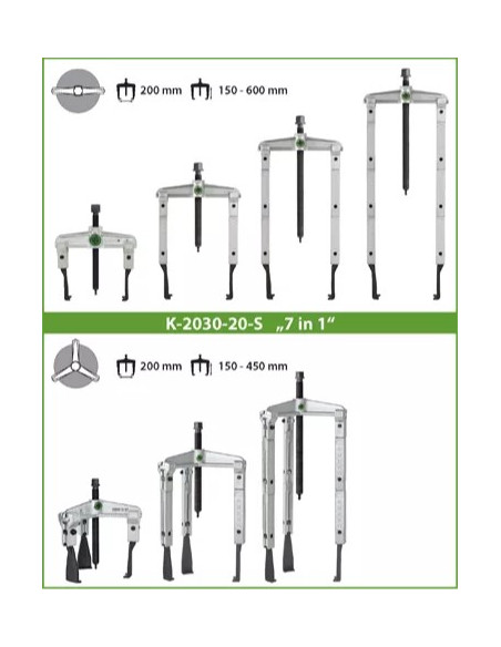 Juego de extractores de rodamientos 2 y 3 patas para espacios angostos