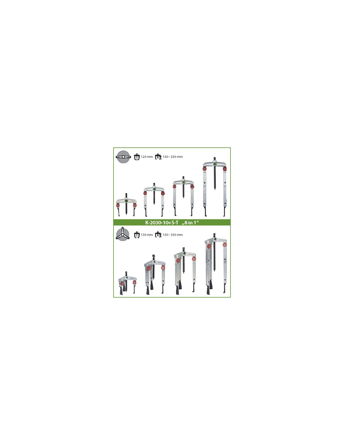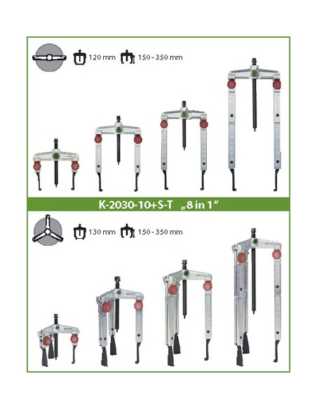Juego de extractores de 2 y 3 patas con regulación rápida y uñas para espacios angostos estrechas