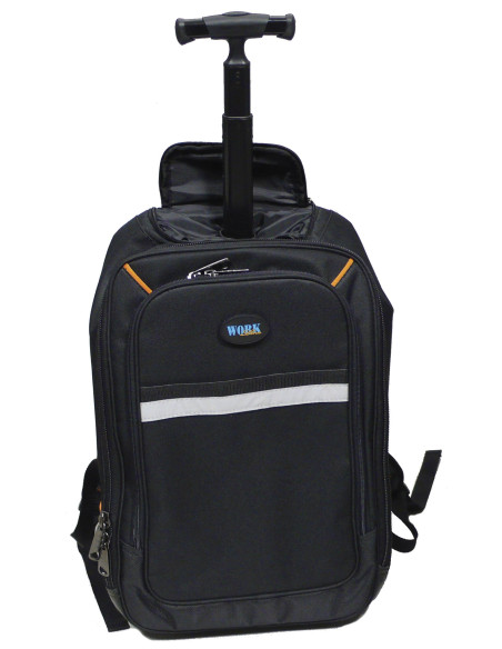 · Mochila ligera y completa, con ruedas, asa telescópica, tirantes, asa superior.