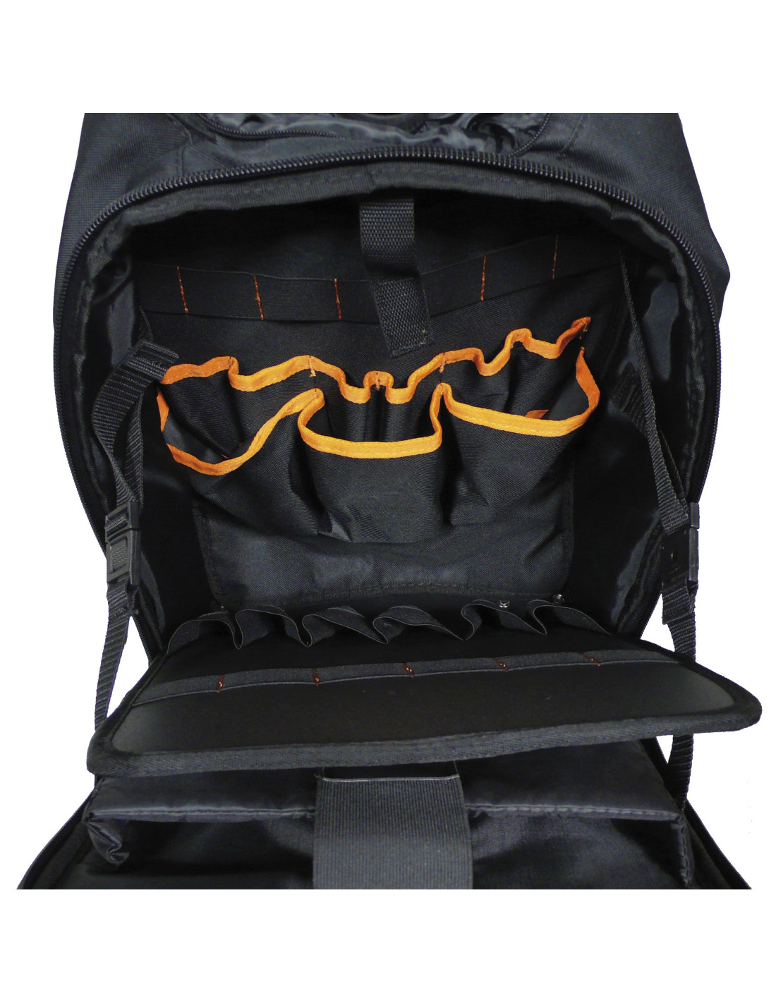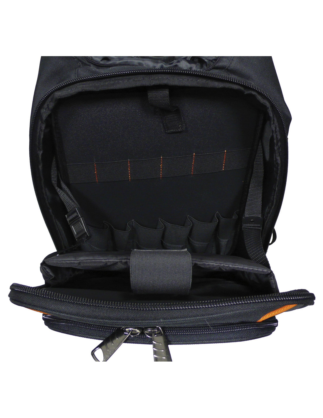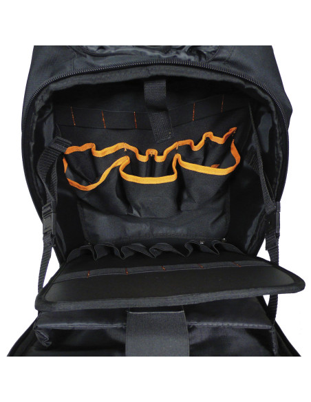 · Panel doble interno con bolsillo y bandas elásticas, para herramientas.