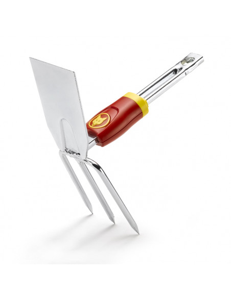 2 utillajes en 1: su pena deshierba, sus dientes mullen y limpian la tierra en profundidad.