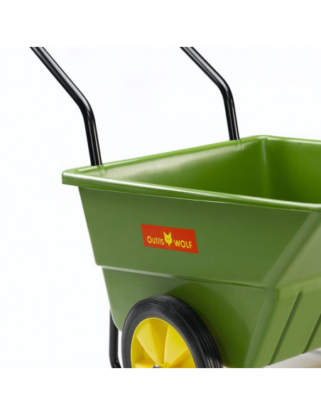 Carretilla ligerade materia sintética y estanca. Mnillar regulable de 65 a 75cm de altura. La carga se distribuye en las dos ruedas, no es necesario hacer ningún esfuerzo! Se inclina hacia adelante para llenarla o variarla fácilmente.
